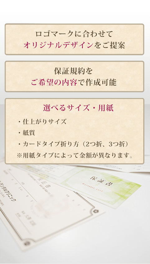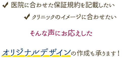 信頼できる医院様をアピールするには保証書は必要不可欠です。信頼できる医院様をアピールするには保証書は必要不可欠です。
